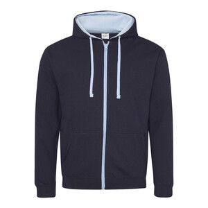 AWDis JH053 - Bleu Marine Français / Bleu Ciel - Sweat capuche zippé contrasté