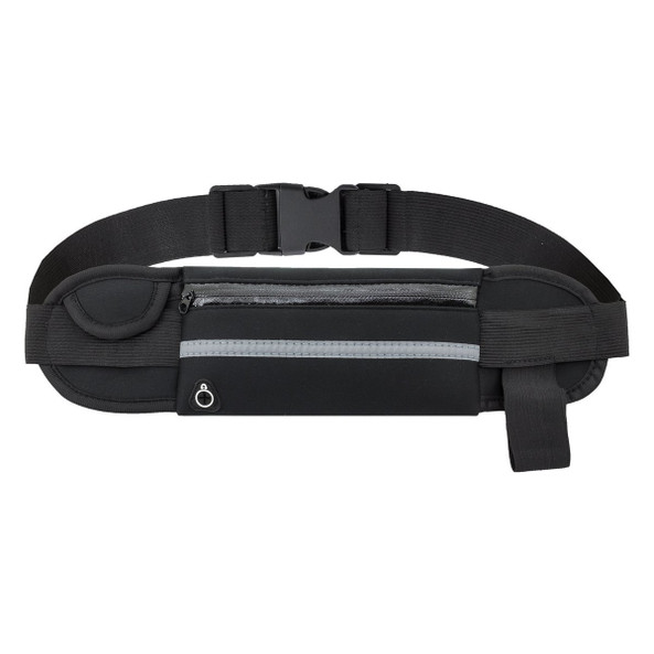 Sac ceinture avec un conteneur porte-bouteille, une boucle pour écouteurs, une poche pour la monnaie et une autre pour le portable.