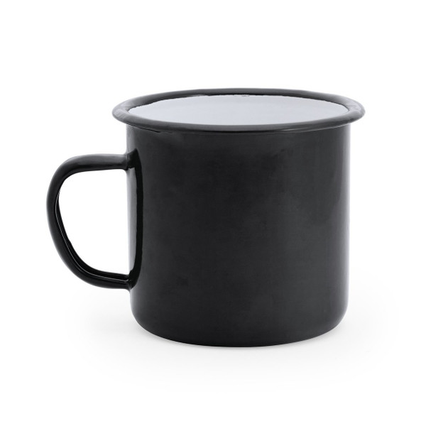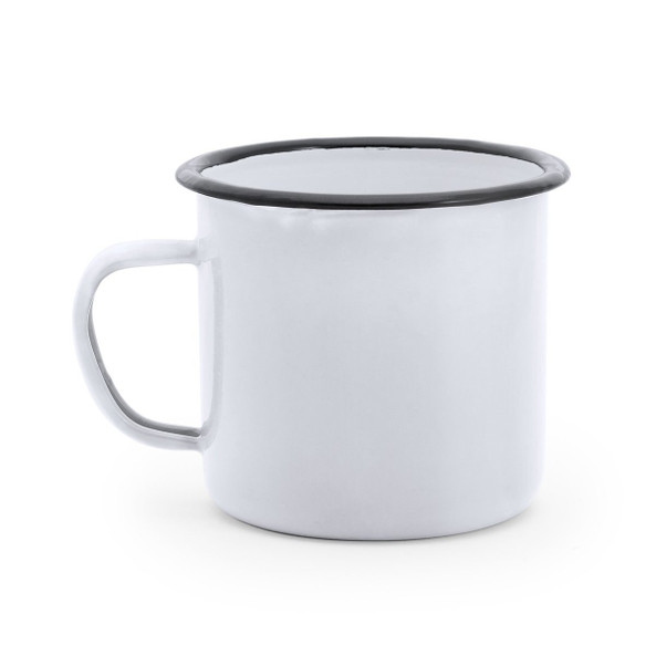 Tasse rétro en métal avec des petites imperfections pour accentuer l'effet rétro. Partie extérieure colorée disponible en plusieurs coloris, partie intérieure blanche avec bord en noir. Emballée dans une boîte individuelle.