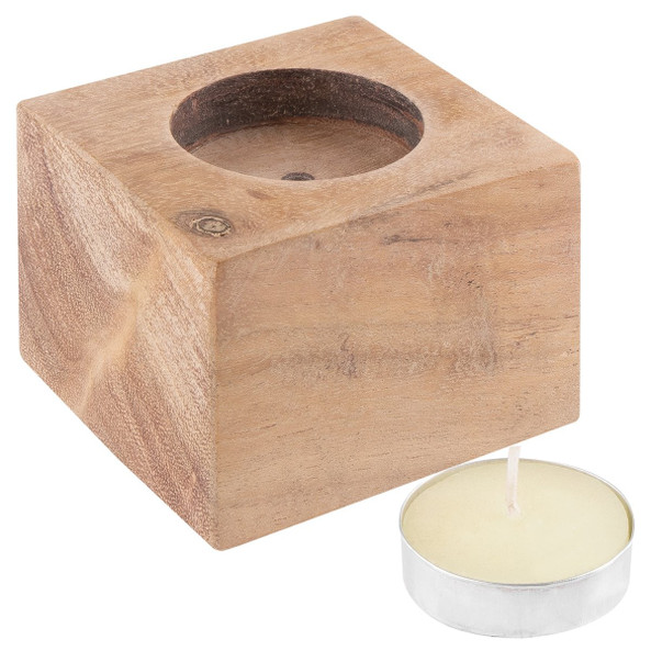 Bougeoir en bois d'acacia. Livré avec une bougie de 10 g