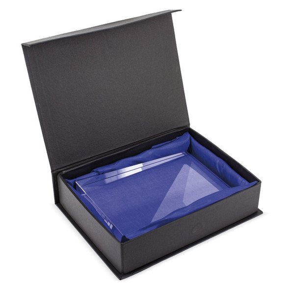Emballé avec un intérieur rembourré doublé de satin bleu, avec fermeture magnétique.