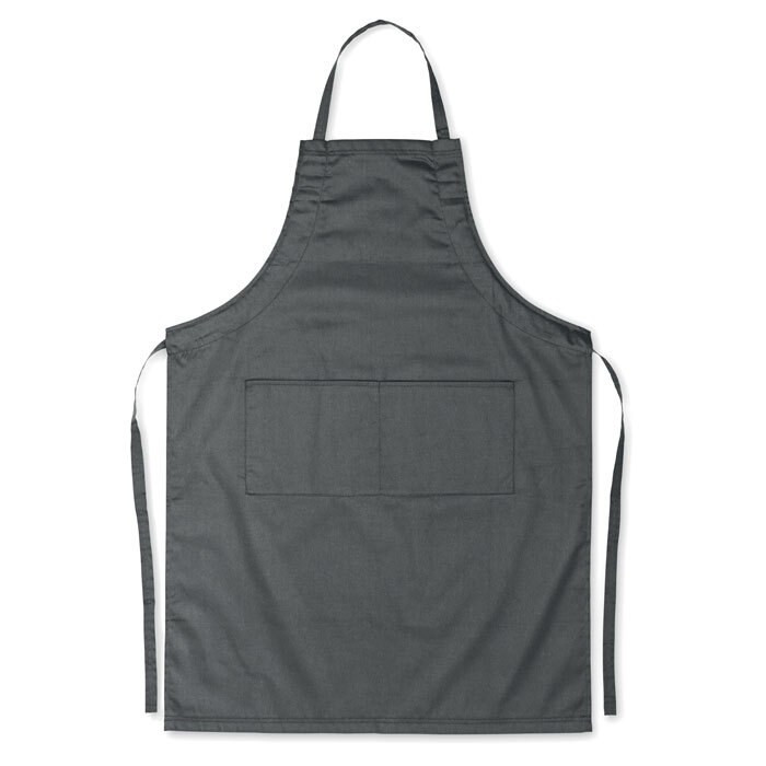 Le tablier de cuisine en coton organique, de 190 grammes, avec deux poches avant, est disponible en deux couleurs.