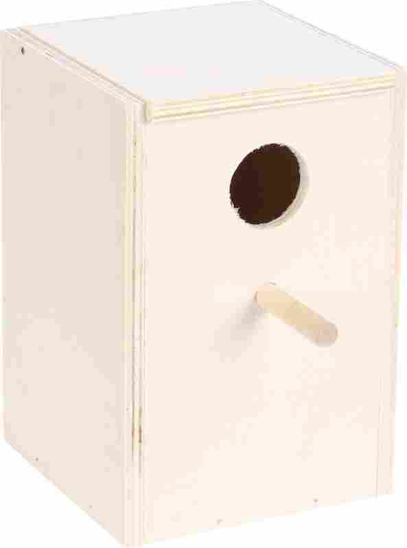 Nid d'oiseau en bois authentique pour les oiseaux exotiques, fabriqué en bois solide. Il dispose d'une entrée facile d'accès et est disponible en différentes variantes.