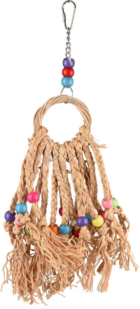 Bague stimulante pour la cage à oiseaux, dotée de corde tressée et de perles stimulantes pour l'oiseau. Ce suspendeur de cage n'est pas seulement amusant à jouer, il est également superbe à regarder ! Un bel ajout naturel dans votre cage à oiseaux, qui donne une belle apparence et permet à votre oiseau de se divertir dans son habitat.