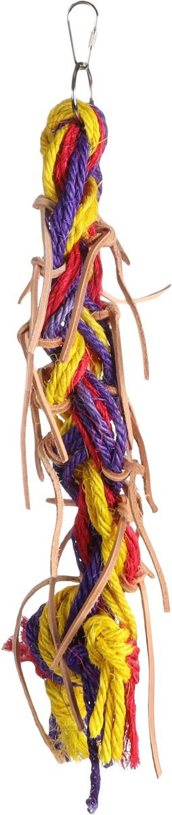 Birdie Meerkleurig est le jouet idal pour ton perruche. Il est fabriqu en sisal et en cuir, avec des rubans et des cordes colors grignoter. Tu peux facilement l'accrocher avec le systme de suspension en mtal. Ton oiseau l'adorera !