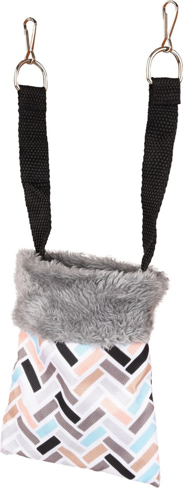 Jolie poche suspendue pour hamsters dorés et nains. Facile à fixer à la cage à hamsters grâce à des clips. Les hamsters aiment y dormir. Stimule leur comportement naturel. Contient un intérieur en peluche douce. Facile à nettoyer avec un lavage à la main.