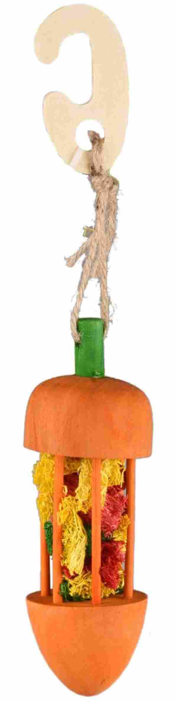 Le Waris Wortel Oranje est un jouet idéal pour ton rongeur. Il est fabriqué en bois de pin solide et possède des morceaux de loofah pour encore plus de plaisir de jeu. Tu peux facilement l'accrocher avec le crochet en bois.