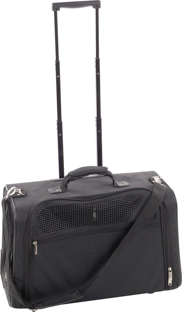 Cette trolley pour chien 2-en-1 est un sac de transport tendance pour votre chien ou chat. En plus d'tre un sac de transport, ce sac peut galement tre utilis comme trolley grce son mcanisme de traction extensible. Le sac est pliable avec une fermeture clair. Les cts sont enroulables, vous permettant d'obscurcir ou de laisser passer la lumire. Il convient aux chiens et aux chats pesant jusqu' 15 kg et est fabriqu en nylon.