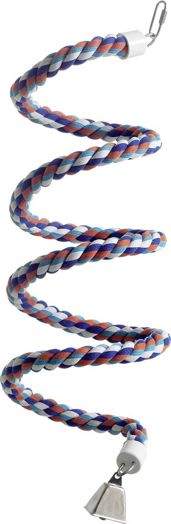 Spirale d'escalade en coton tress solide. La spirale est facile fixer la cage et possde une clochette en bas. Lorsque votre oiseau joue avec, la spirale bouge de haut en bas et fait sonner la clochette !