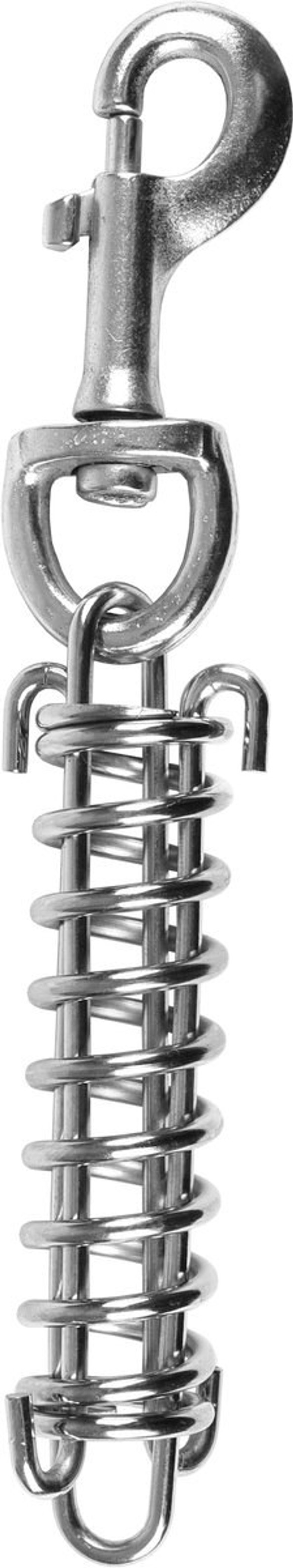 Ce ressort de scurit peut tre utile lors de la promenade de votre chien. Vous pouvez attacher le ressort la laisse ou la chane d'attache du chien grce sa fermeture pratique. Le ressort offre un espace supplmentaire, ce qui allonge la laisse. Le ressort de scurit est idal lorsque vous attachez votre chien une chane d'attache et que le chien tire. Cela vite les chocs supplmentaires. Idal pour le camping et le jardin.