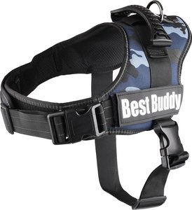 Le harnais pour chien Best Buddy Pluto est robuste, hydrofuge et a un look cool ! Le harnais a une doublure douce et un rembourrage spcial pour une meilleure circulation de l'air. Les coutures sont rflchissantes, de sorte que le chien est bien visible dans l'obscurit. partir de la taille M, les harnais ont une poigne en caoutchouc sur le dessus, afin que vous puissiez tenir le chien en laisse lorsque cela est ncessaire. Le harnais est rglable grce la sangle de poitrine et de ventre. La sangle de ventre peut tre facilement ferme et la sangle de poitrine peut tre ferme avec du velcro et un systme de clic. Vous pouvez facilement attacher le chien l'anneau sur le dessus. Dans l'ensemble, c'est un harnais solide et de trs bonne qualit dont vous pourrez profiter longtemps !