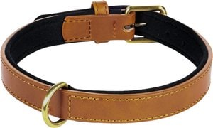 Le collier pour chien Lyabo a une belle couleur cognac lgante, une face intrieure noire et est fini avec des dtails dors. Il est disponible en plusieurs tailles et couleurs.