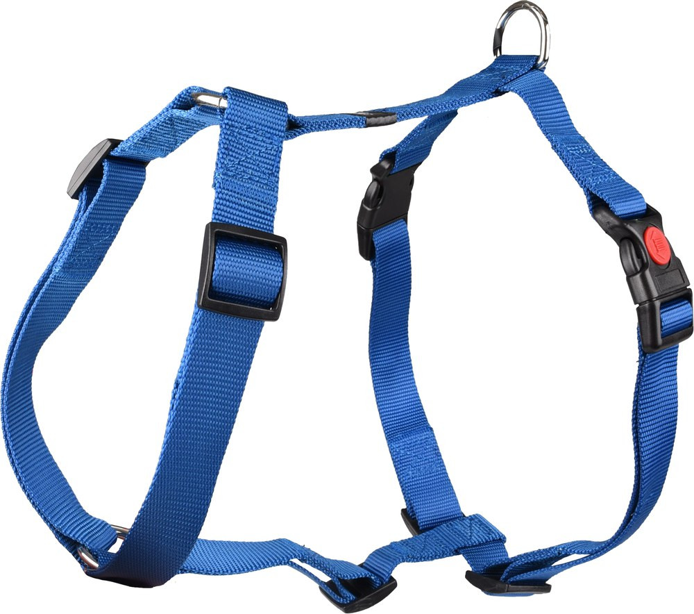 Ce joli harnais pour chien bleu est idéal comme modèle d'entrée pour votre chiot ou chien adulte. Le harnais est fabriqué en nylon solide et durable, ce qui le rend également résistant à la saleté et à l'eau. Ce harnais est facile à ajuster sur deux endroits du corps et se ferme facilement avec une boucle à clic. Ce modèle de harnais pour chiens assure une grande respirabilité et ne met pas de pression sur le cou et la gorge du chien. Disponible en plusieurs couleurs et tailles.
