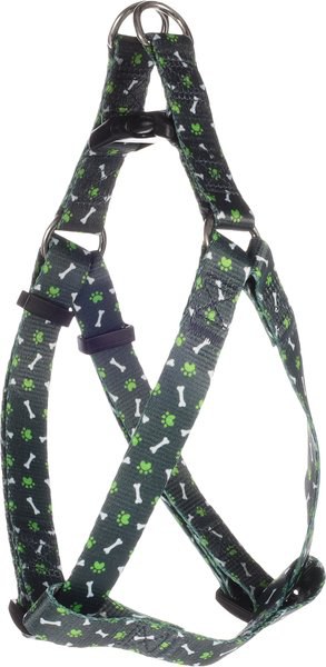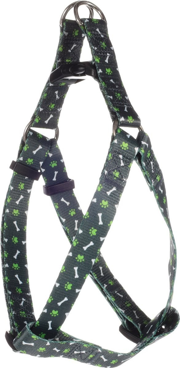 Ce harnais pratique est idal utiliser et a une apparence ludique avec des accents verts. Le harnais est fabriqu en nylon solide, ce qui donne une bonne base pour un contrle suffisant sur le chien. Grce la double D-ring sur le dos, le harnais reste confortable pour le chien pendant la promenade. La fermeture clic offre une possibilit de fermeture pratique. Ce harnais est disponible dans une collection qui propose galement de jolies laisses assorties pour chiens.