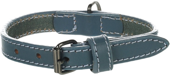 Ce collier robuste est idal pour ton chien. Il est fabriqu en cuir de buffle et possde une boucle brillante de couleur gris fonc. Le cuir huil et les coutures solides garantissent une utilisation durable. Le collier est disponible en bleu.
