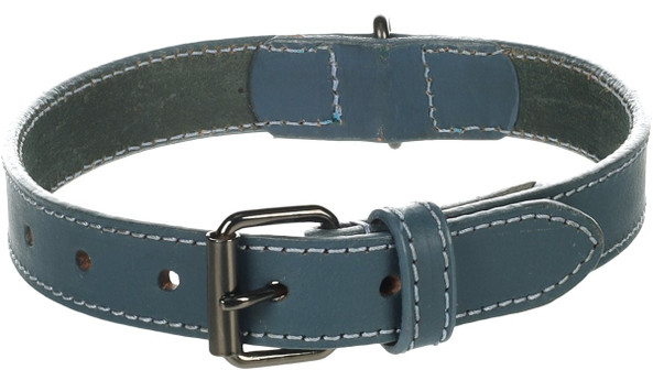 Ce collier robuste est idal pour ton chien. Il est fabriqu en cuir de buffle et possde une boucle brillante de couleur gris fonc. Le cuir huil et les coutures solides garantissent une utilisation durable. Le collier est disponible en bleu.