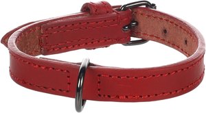 Ce collier rouge est idal pour ton chien. Il est fabriqu en cuir de buffle et possde une boucle brillante de couleur gris fonc. Le cuir huil et les coutures solides garantissent une utilisation durable.