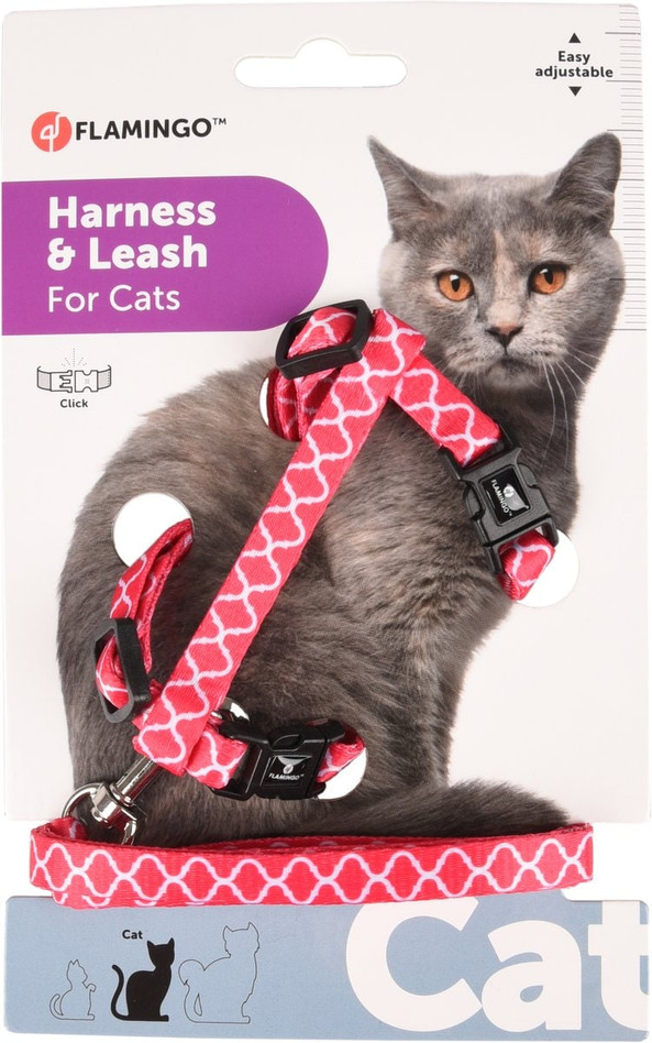 Avec le harnais et la laisse Amsi, tu peux laisser sortir ton chat en toute scurit et confort. Le harnais est fait en nylon et peut tre ajust en continu. La fermeture clic permet de le mettre et de l'enlever facilement. Les pices mtalliques chromes lui donnent un look cool.