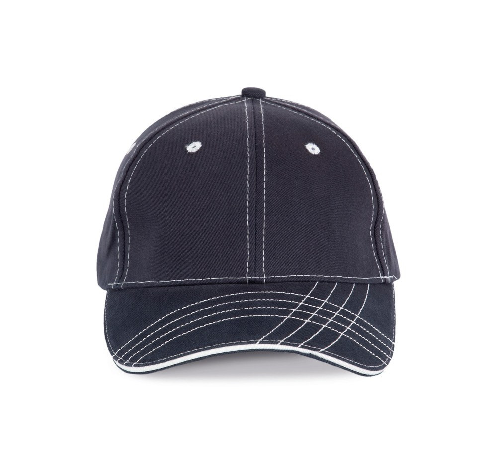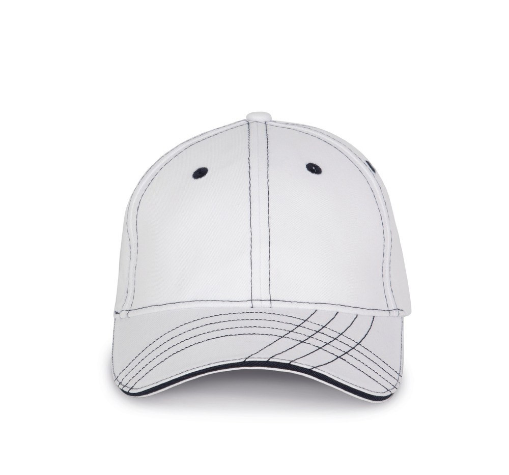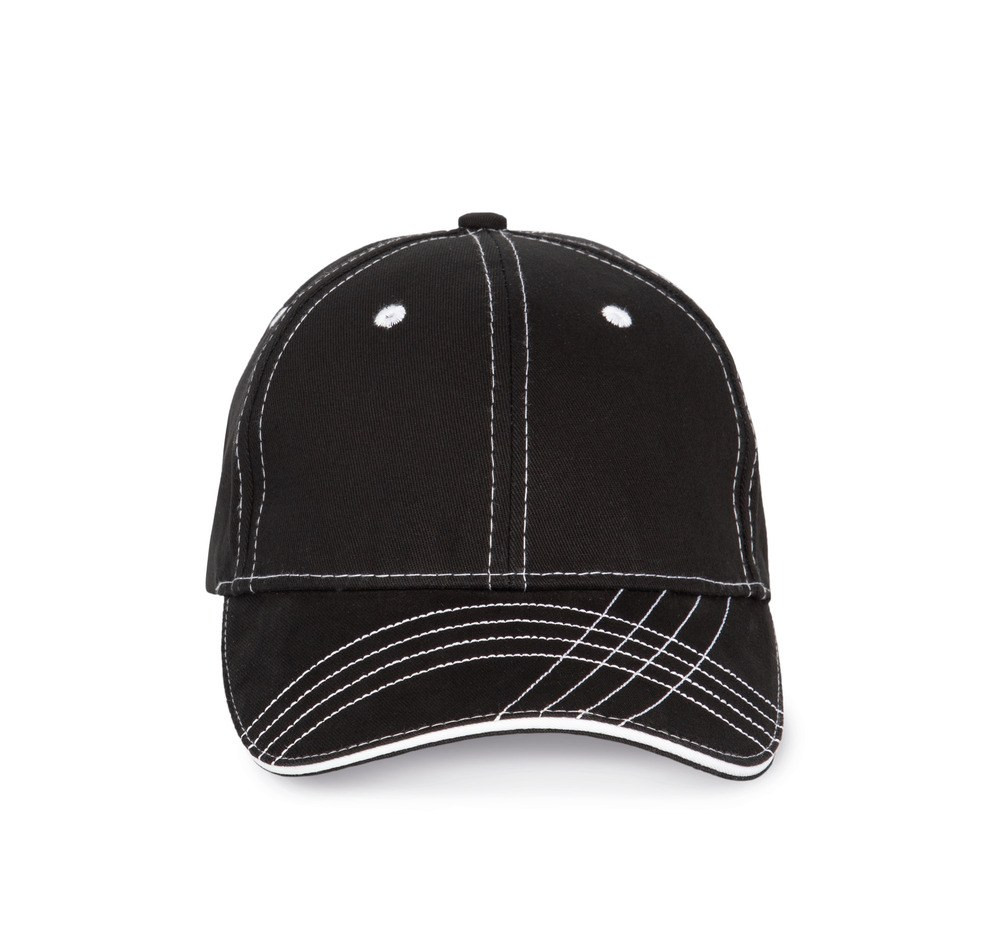 Le détail des 4 traits ondulant et se croisant sur la visière sont la marque de fabrique de cette casquette K-up. En 100% coton sergé brossé et avec ses 6 panneaux, elle offre de belles garanties. Les oeillets et les surpiqûres contrastés apportent aussi leur note esthétique. Une bande de transpiration en coton vous permettra de vous sentir toujours bien et la fermeture réglable par boucle métallique assure l'adaptation parfaite à votre tête. Avec des couleurs de base black, marine, red et blanc, les contrastes colorés sont proposés en white ou bleu marine.