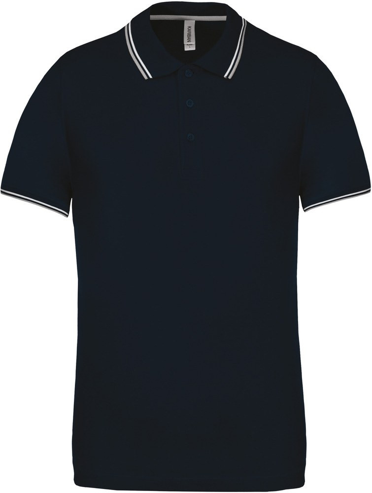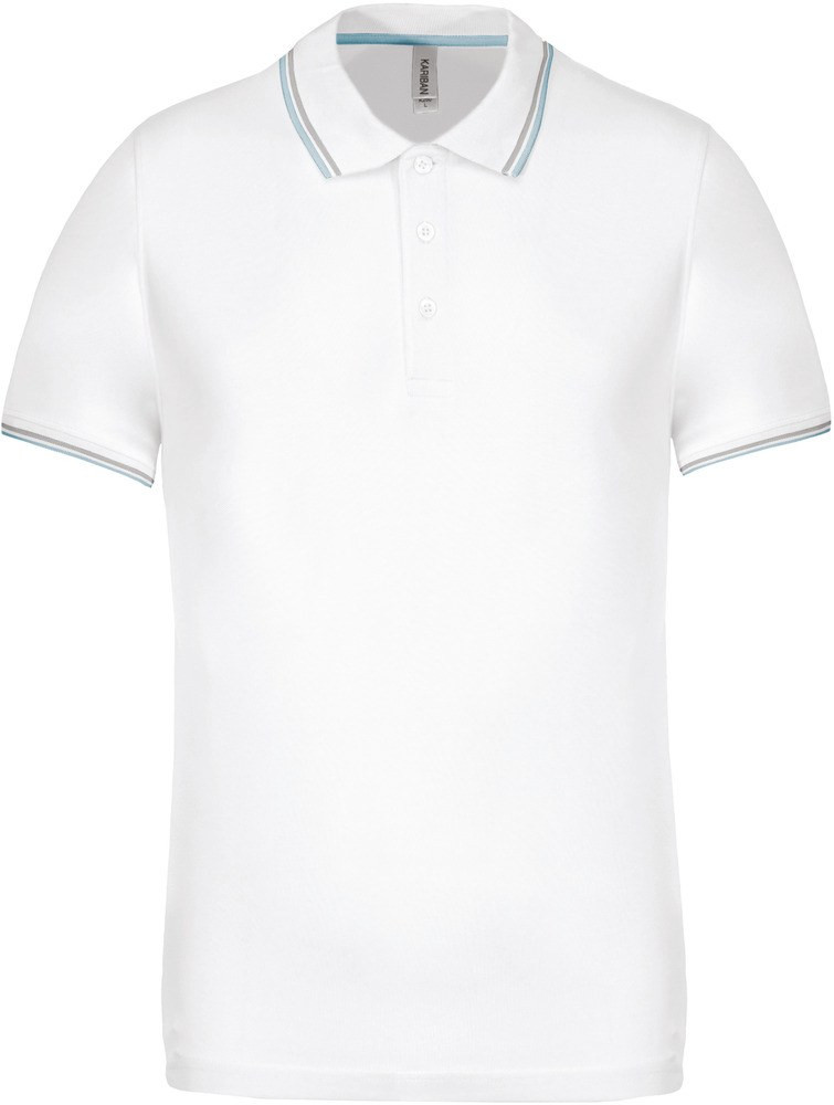 Messieurs, c'est un polo à manches courtes de qualité que vous propose Kariban. Façonné en 100% coton piqué au grammage de 220 g/m², il sera très doux sur la peau et vous ne pourrez plus vous en passer. Remarquez les belles finitions comme la patte de boutonnage 3 boutons, la bande de propreté contrastée à l'encolure et aux fentes de côtés, les finitions bord-côte avec liserés contrastés au col et au bas de manches et enfin, la piqûre double aiguille en bas de vêtement. Vous choisirez votre polo en blanc, bleu ou noir avec chaque fois des liserés de coloris différents, du S au 3XL.