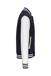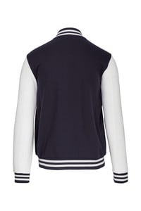 Veste teddy unisexe en molleton 70/30 coton-polyester, offrant un look varsity classique avec une chaleur et un confort supérieurs au quotidien. Cette veste en molleton gratté 3 fils se distingue par ses manches montées contrastées et sa fermeture par boutons-pression, rappelant l'esthétique intemporelle des universités américaines. Conçue pour la polyvalence, elle comprend un col, des poignets et un bas de vêtement en bord-côte avec rayures contrastées, ainsi que deux poches avant passepoilées. La propreté de l'encolure est assurée par une bande de propreté en sergé. Pour les professionnels, l'absence d'étiquette de marque au col facilite la personnalisation et le rebranding. Que ce soit comme basique vierge pour un style décontracté ou personnalisée pour des événements, cette veste certifiée OEKO-TEX garantit sécurité et durabilité. Disponible en gros pour vos besoins promotionnels.