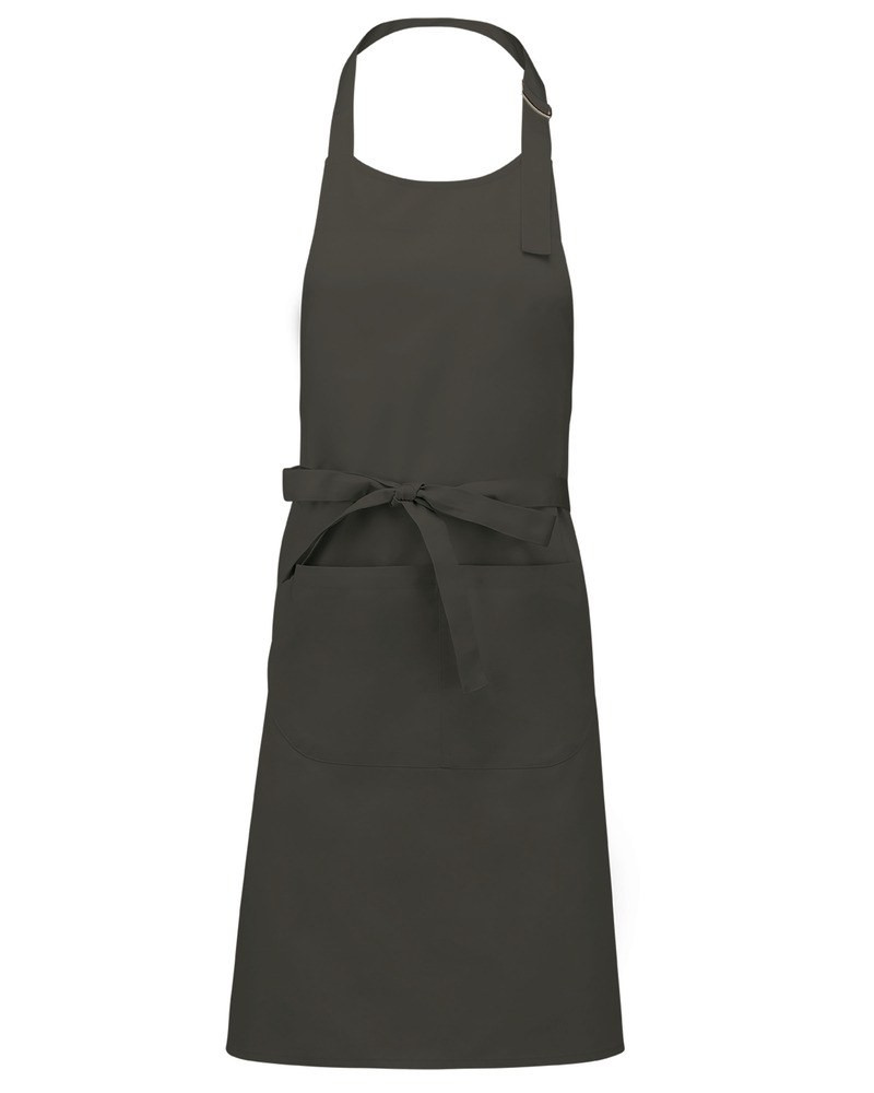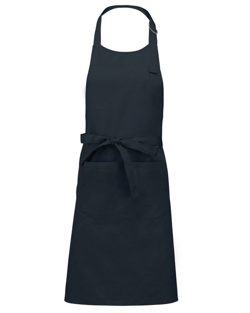 Ce grand tablier unisexe, de dimensions 90 cm de hauteur et 76 cm de largeur, est réglable par passant métallique.