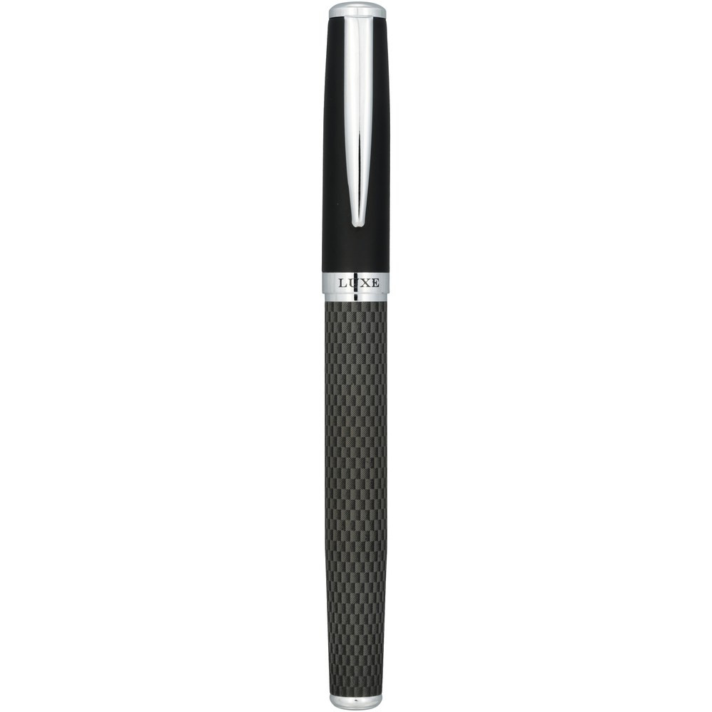Pour une différence subtile en noire, ce lot au design exclusif composé d'un stylo à bille et d'un stylo roller a une finition imprimée en fibre de carbone. Pochette de protection de qualité incluse, emballage dans une boîte cadeau « LUXE ».