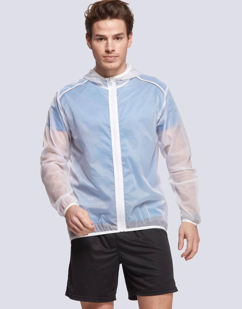 Coupe-Vent Running unisexe ULTRA LIGHT ( 84 G /taille L ) semi-transparent à capuche élastiquée. 100% nylon déperlant et respirant. Ouverture totale par zip. Biais réfléchissants sur les épaules devant et dos. 1 poche zippée à l'arrière permettant de replier le coupe-vent ou d'accueillir un objet.