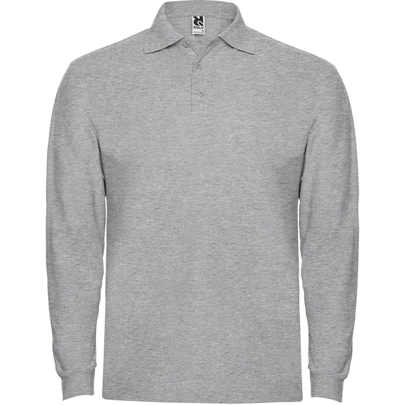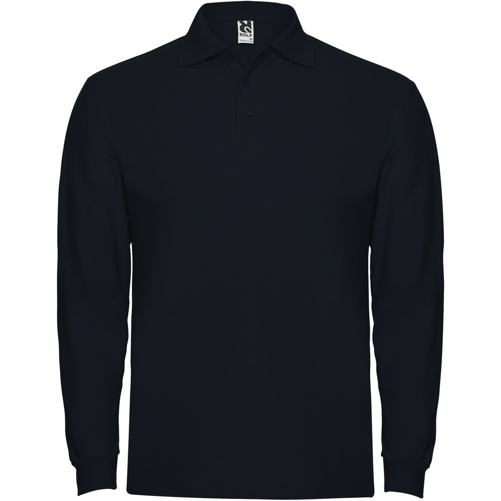 Polo à manches longues avec col et poignets côtelés, patte de boutonnage à 3 boutons et poignets côtelés 1x1 en élasthanne. Coutures recouvertes renforcées au col. Poche optionnelle. Étiquette détachable. Le mannequin mesure 190 cm et porte la taille L.