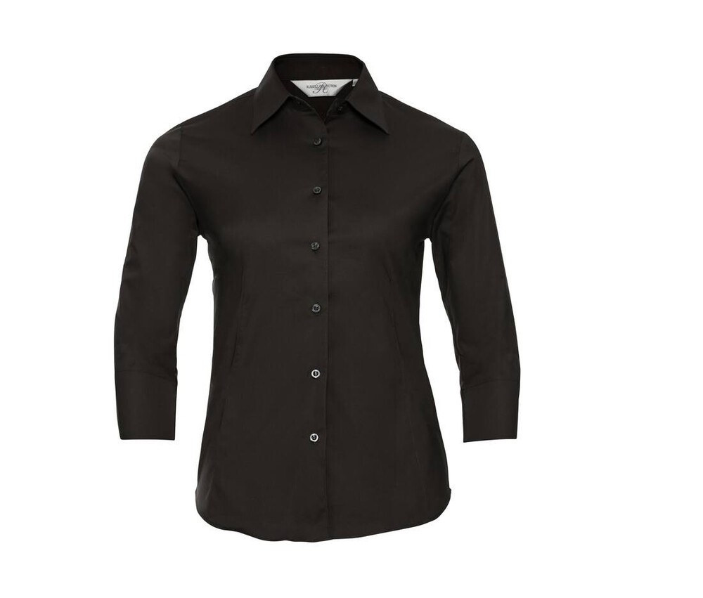 97% coton / 3% elastanne. Chemise ajustée en coton/élasthanne. Maille extensible pour un meilleur confort. Pinces au niveau du dos et à l’avant pour une coupe plus féminine. 7 boutons ton sur ton. Col classique à bouton unique. Sans poche. Manches 3/4 avec poignets fendus.