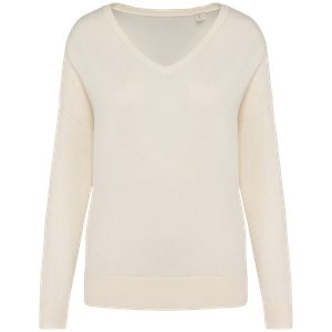 Spasso SP921 - Ivoire - Pull écoresponsable col V en lyocell femme