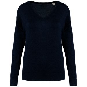 Spasso SP921 - Bleu Navy - Pull écoresponsable col V en lyocell femme