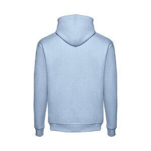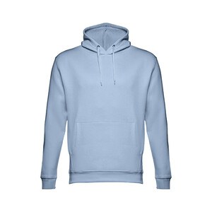Sweatshirt (unisexe) avec capuche en 50% coton et 50% polyester (320 g/m²) et intérieur molleton. La capuche comprend des œillets et un cordon de serrage coloré. Sweatshirt avec poche marsupiale et côte 1x1 aux poignets et à la taille