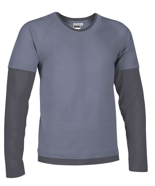 T-shirt col rond,bicolore avec effet double manches.Fabriqué en tissu 100% coton ring Spun doux et confortable. Manches col et bas en couleurs contrastées avec effet double t-shirt. Col rond en bord-côte élastique qui s’adapte confortablement. Bande intérieure dans le cou qui renforce sa structure et réduit la déformation. Convient pour diverses méthodes de marquage : sérigraphie, broderie, transfert, vinyle. Idéal comme textile publicitaire, vêtement décontracté et souvenir.