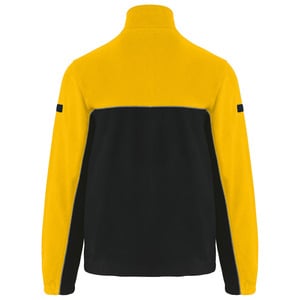 Passepoil contrasté entre les parties du vêtement bicolores (corps et manches devant et dos).